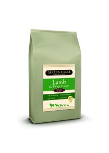 Golden Eagle Super Premium Lamb&Rice / Large&Giant Breed Puppy on aikuisille koirille, sekä suuri- ja jättiläisrotuisten pennuille tarkoitettu täysravinto, joka sisältää valikoituja, korkealaatuisia proteiinien ja hiilihydraattien lähteitä ilman kemiallisia säilöntä-, maku- tai väriaineita. Lihapitoisuus yli 40 %.